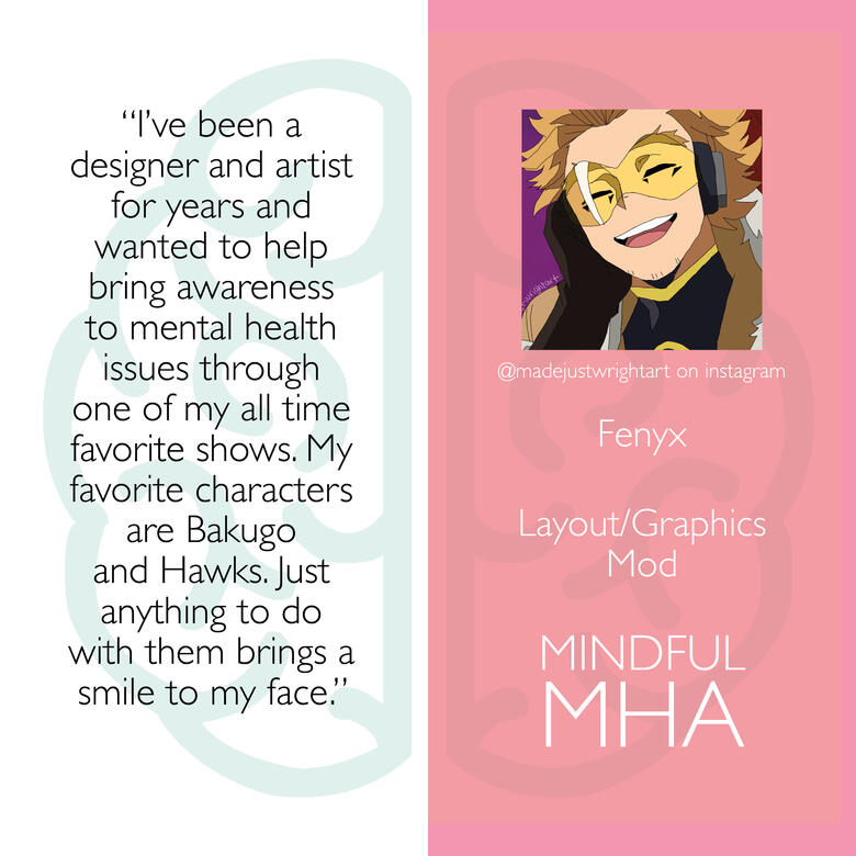 A zine focusing on the mental health issues in the MHA universe. It will include works of fanfiction and fanart as well as real world articles and coping mechanisms.